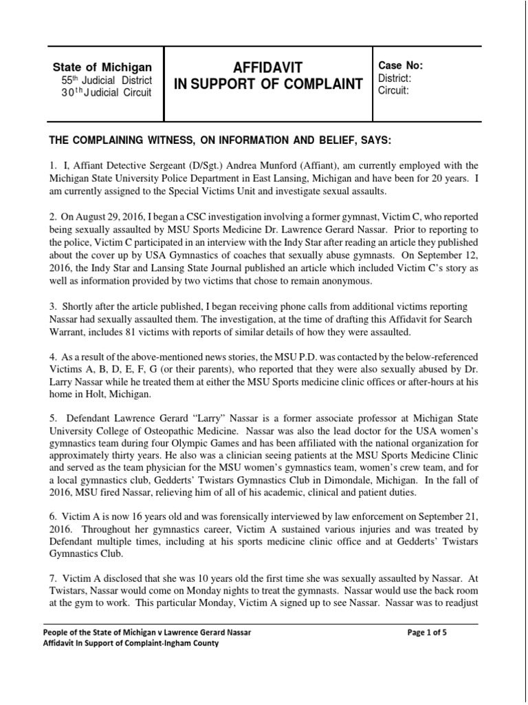 Larry Nassar Ingham County Affidavit Pdf Vagina Massage